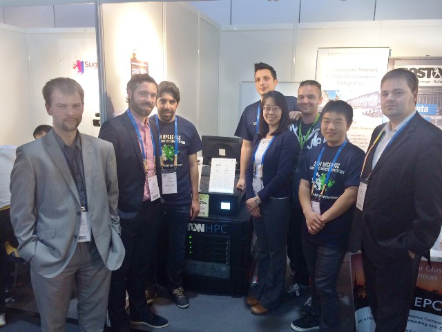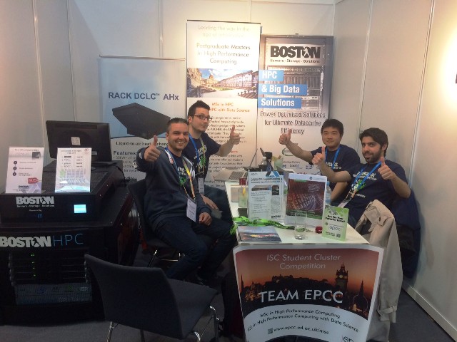 Boston is delighted to announce that the University of Edinburgh's entry into the ISC 2014 Student Cluster Competition, EPCC, has been awarded first place in the LINPACK test! Congratulations team! The guys at EPCC harnessed Boston's liquid cooled GPU servers to smash the 10Tflop mark for the first time - shattering the previous record of 9.27Tflops set by students at ASC14 earlier this month. The team recorded a score of 10.14Tflops producing 3.38 Tflops/kW which would achieve a rank of #4 in the Green500, a list of the most energy efficient supercomputers in the world. Xu Guo of the EPCC team, said, "Pairing liquid cooled GPU technology with Boston's Supermicro-based HPC servers allowed the team to divert more power for compute and less on cooling. The student group was able to reduce the power required for cooling by removing a number of fans from the server and allocating more of their resources to compute nodes."