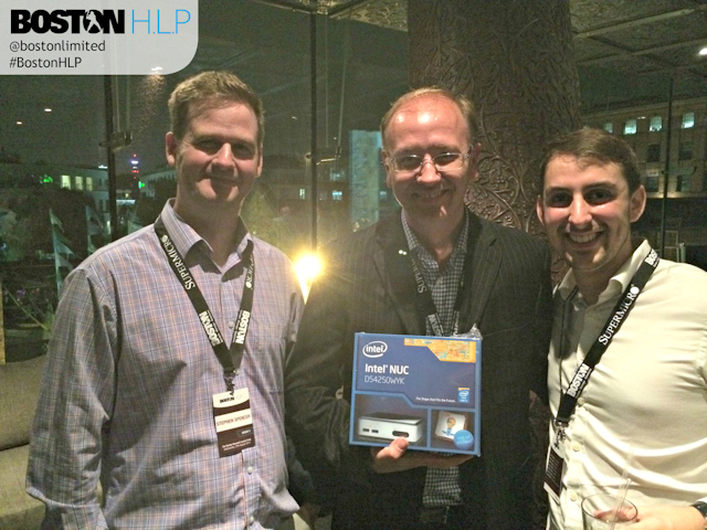 The event kick started after reception drinks and canapés by the room splitting into 4 groups and rotating round Intel, Supermicro, LSI and Boston’s pod.