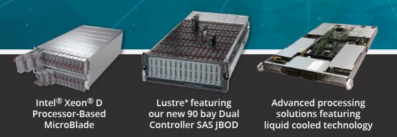 Lustre* featuring our new 90 bay Dual Controller SAS JBOD - The latest addition to our building block range of HPC Lustre* storage solutions offers 90 drives per 4U OST enclosure with redundant MDS and OSS systems providing resilience and full load balancing features.