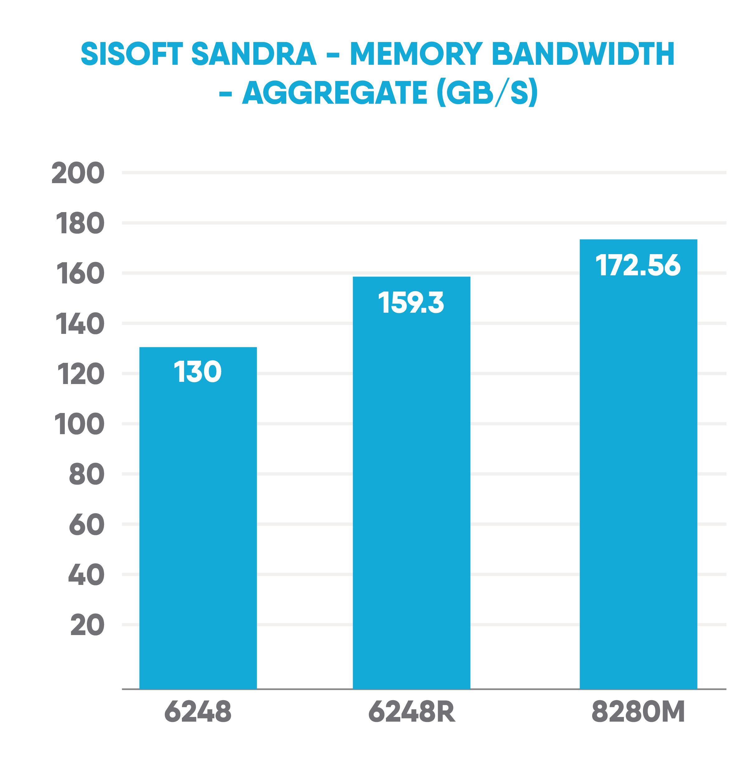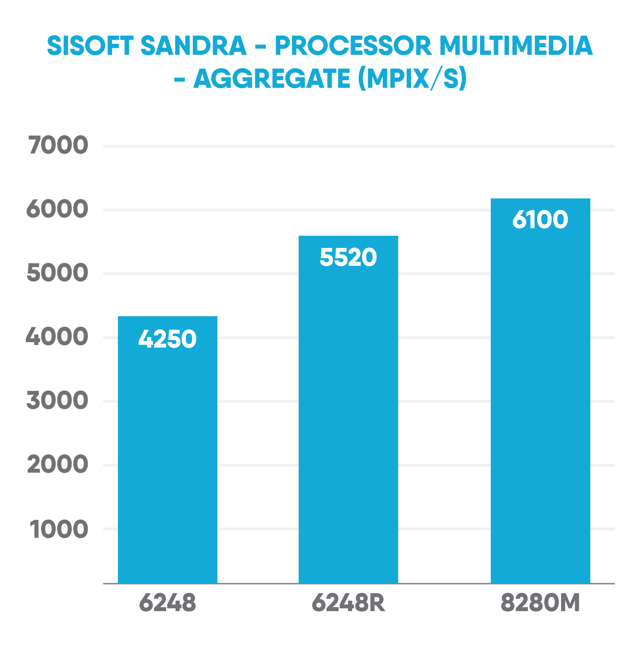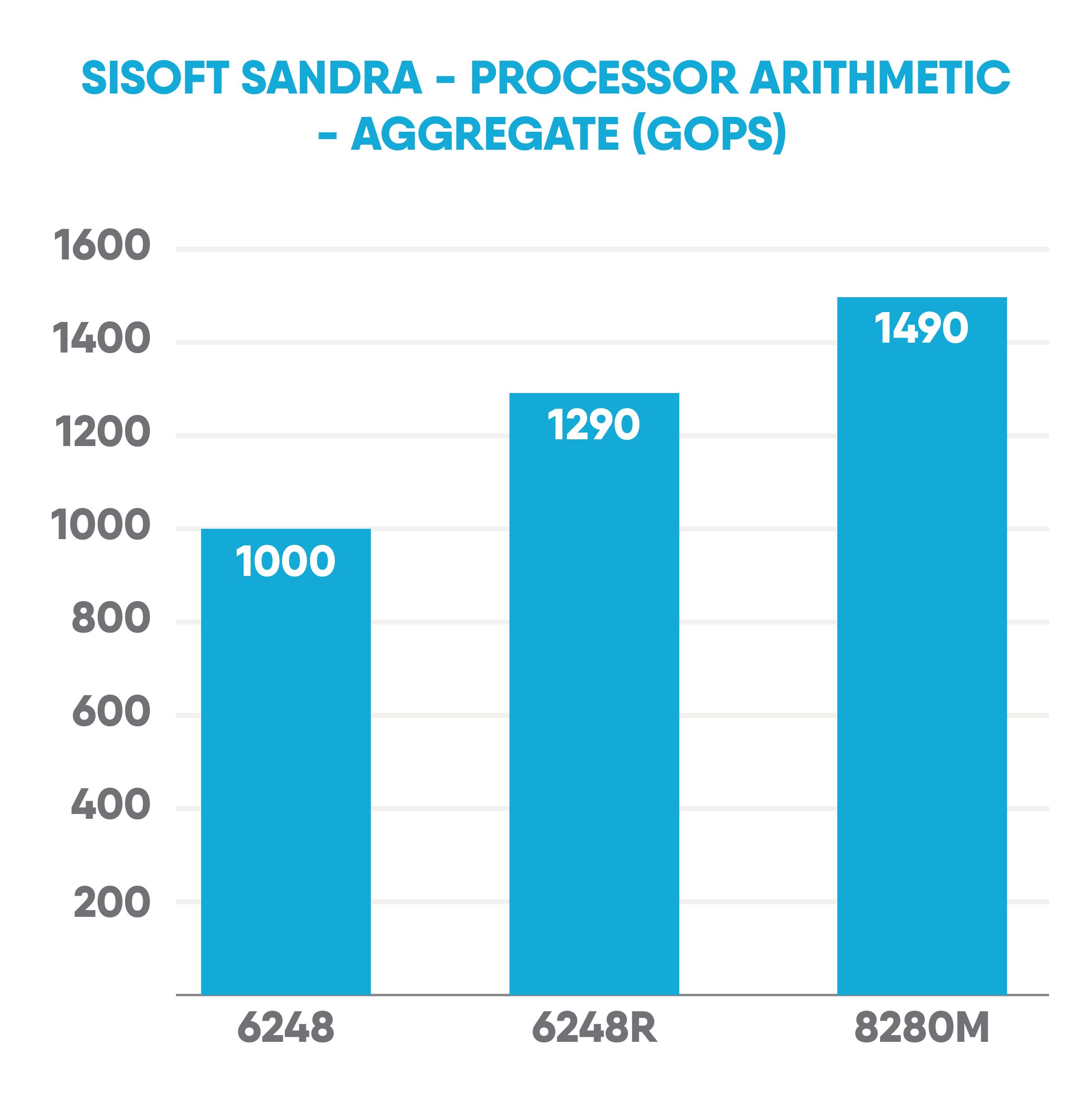 A similar trend is seen with SiSoftware’s SANDRA™ benchmarking suite, the 28 core 8280M leads the pack but the 6248R again comes close in most tests.