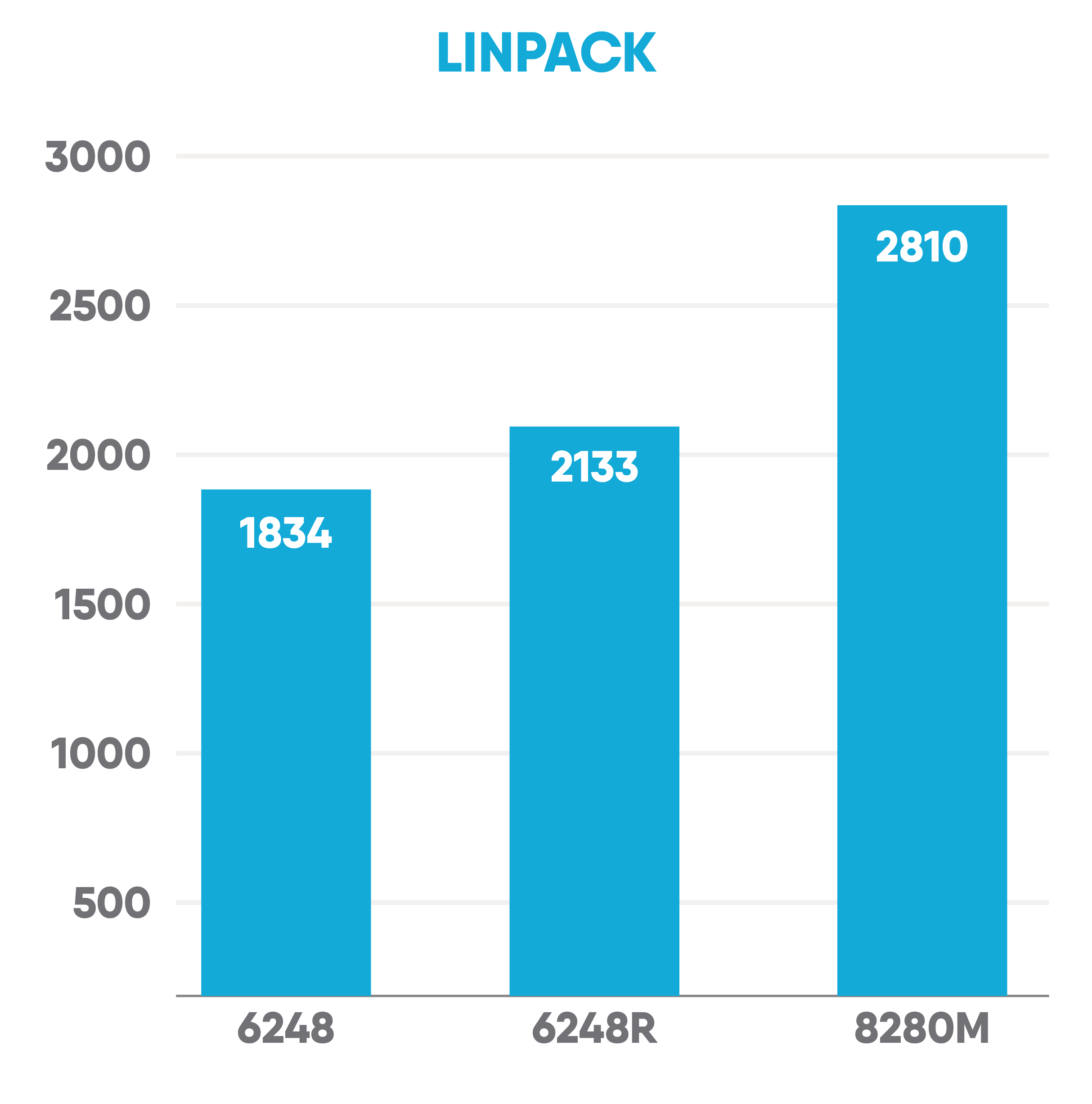 When looking at the LINPACK scores, the 6248R outpaces its predecessor with ease, showing a ~15% increase. Here the 8280M, however, keeps well ahead with its higher core and thread count showing a bigger difference.