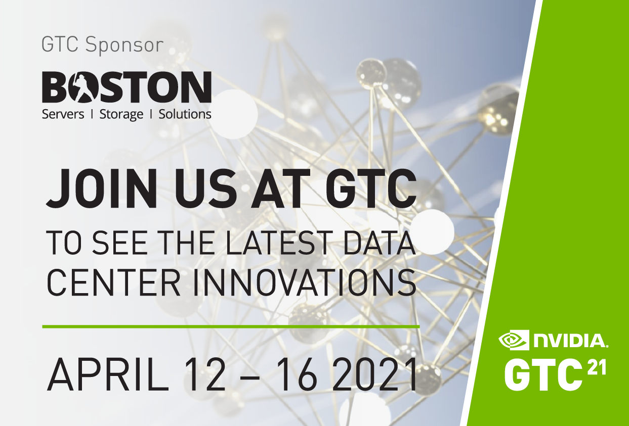 Join Boston at NVIDIA's GTC for a transformative global event that brings together brilliant, creative minds looking to ignite ideas, build new skills, and forge new connections to take on our biggest challenges. It all comes together online April 12 - 16, kicking off with CEO and Founder, Jensen Huang's keynote.