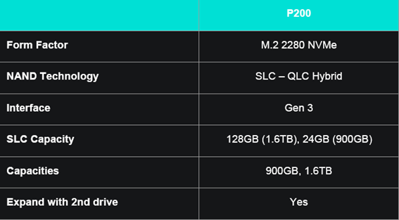 Using PCIe Gen 3 bus, the P200 has an M.2 2280 form factor and uses the performant NVMe interface. It comes in 2 capacity options a 900GB and a 1.6TB model which include 24GB and 128GB of the faster SLC NAND respectively. In this review we will be looking at the 1.6TB edition and putting it through it’s paces.