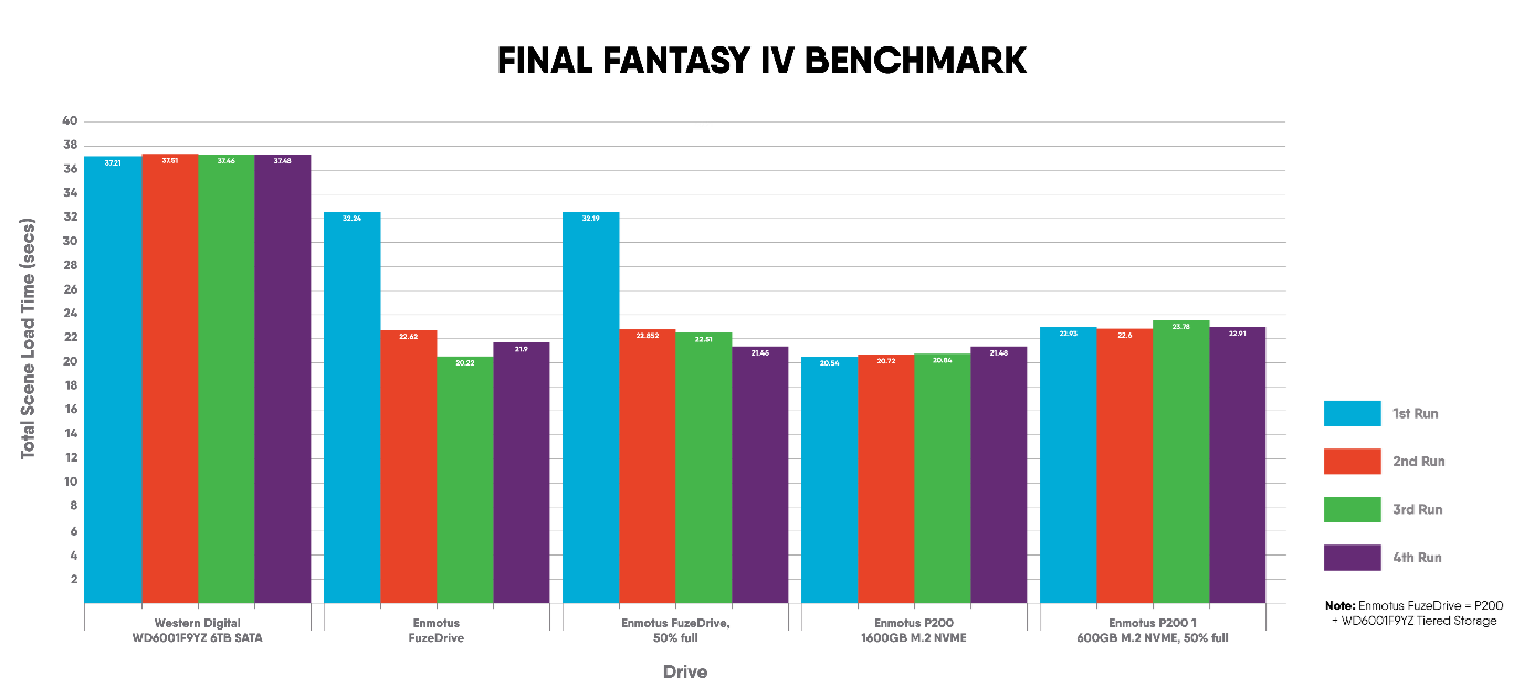 As can be seen in the table, we got the same result even when the drive is half full, in this case this was 3.4TB of random data on the 6.8TB FuzeDrive. After the first run the load times are on par with the standalone P200 - Quite impressive!