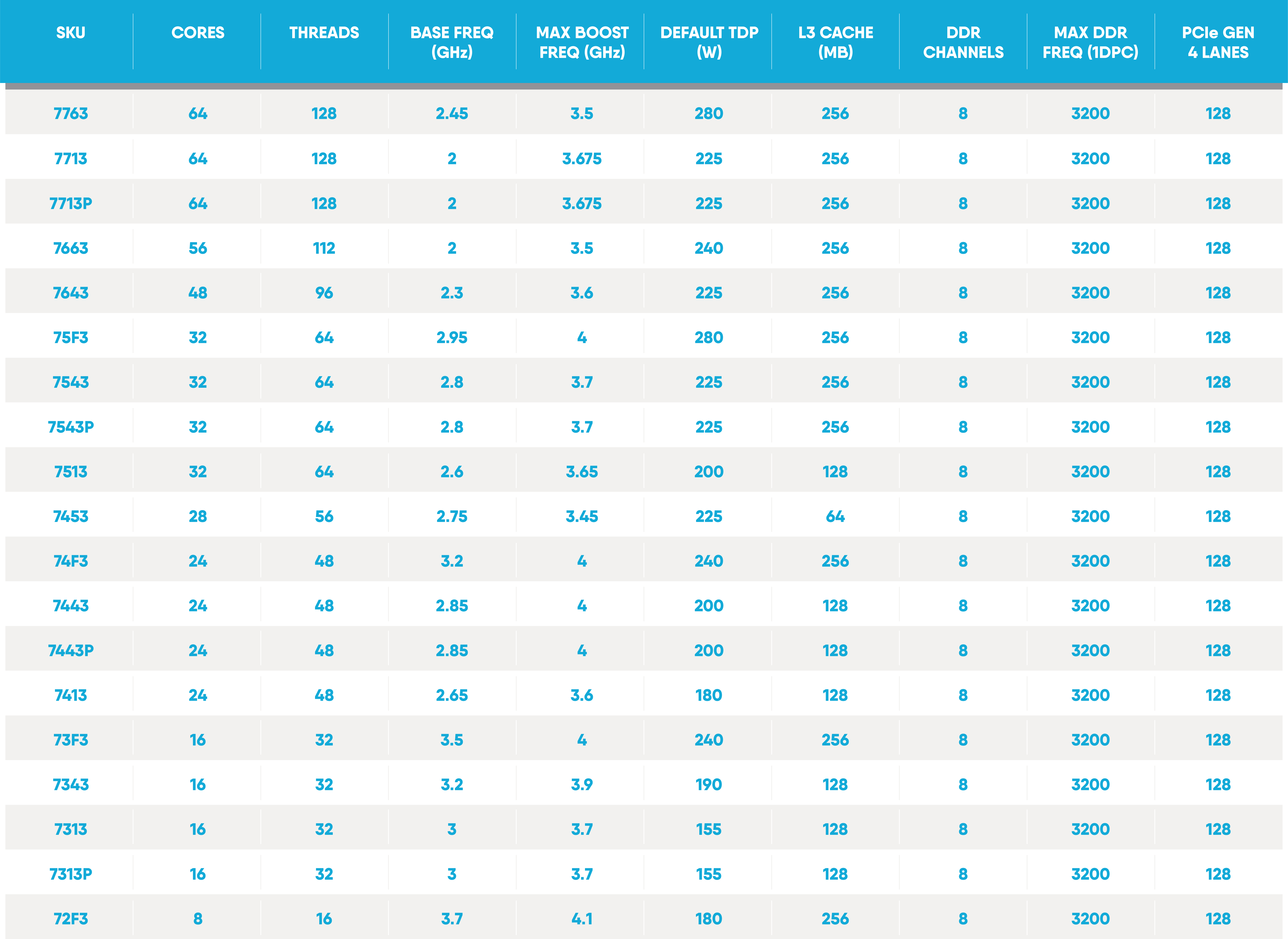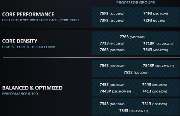 Figure 5 - AMD EPYC 7003 Milan SKU’s