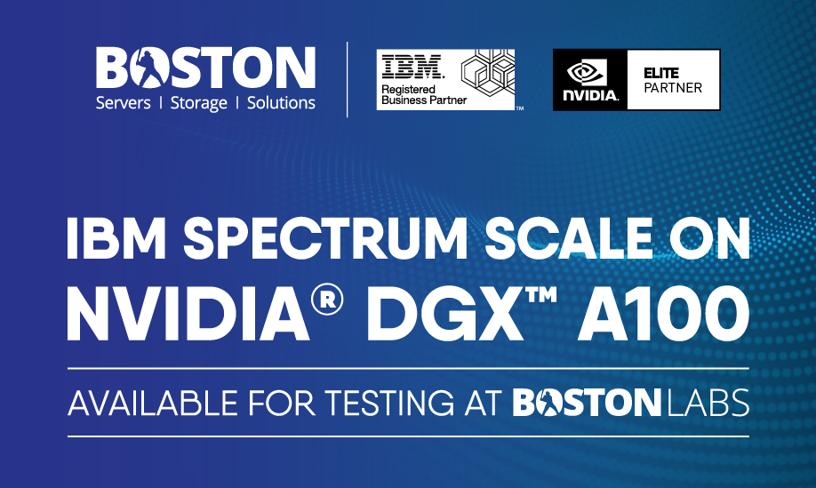 Boston is proud to be close partners with IBM and NVIDIA. The IBM Spectrum Scale and NVIDIA DGX A100 certified system is available to test at Boston Labs, where our team are on hand ready to help deliver your goals. and we are pleased to offer testing imminently on the NVIDIA DGX A100 with IBM Spectrum Scale! Get in touch today to book your test drive at Boston Labs where our team are on hand to help meet all of your requirements. Get in touch today to book your test drive at Boston Labs where our team is on hand to help meet all of your requirements. Email sales@boston.co.uk, call us on 01727 876100 or fill in the form below and one of our team will arrange your test drive.