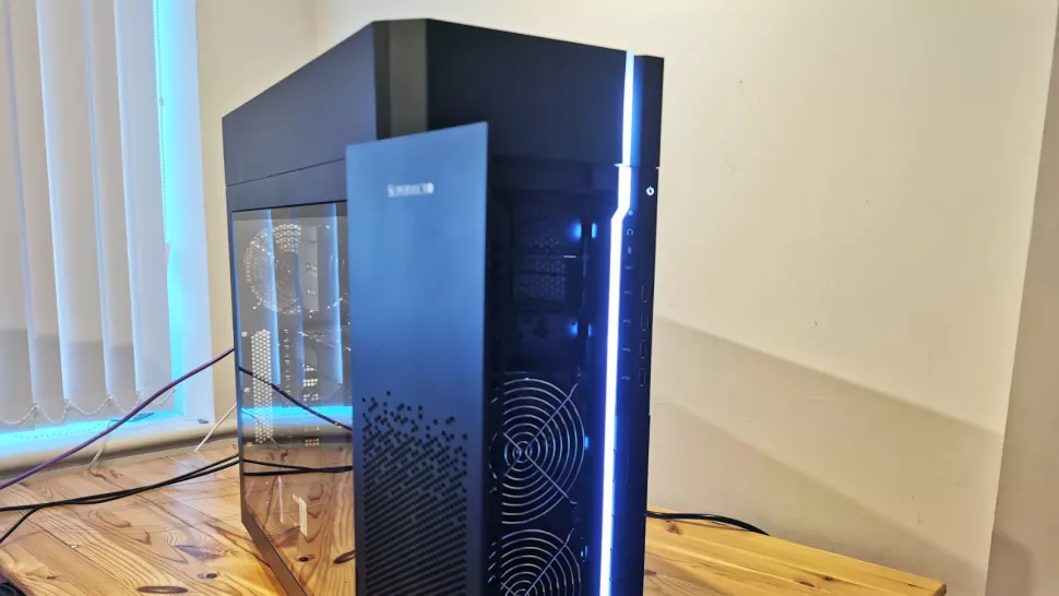 To provide the space needed for the potential parts that could be mounted inside, Supermicro made a huge E-ATX specification enclosure that needs two people to safely handle.