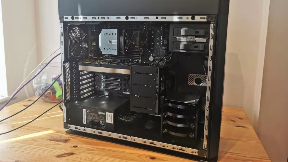 Removing the clear side panel gives ample access to the internals that makes adding or removing hardware remarkably straightforward.