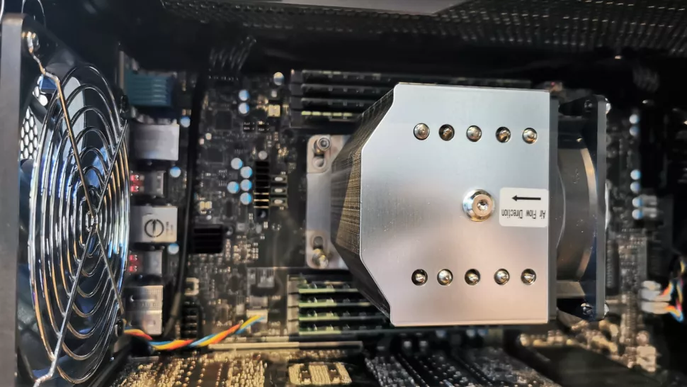 The embodiment of AMD's effort is at the heart of this machine, the AMD Ryzen Threadripper PRO 3975WX, a veritable chained Rancor of desktop processors. It features 32 cores, hyperthreaded to handle 64 threads, with a base clock of 3.5GHz, boosting to 4.2GHz and power consumption of 280W.