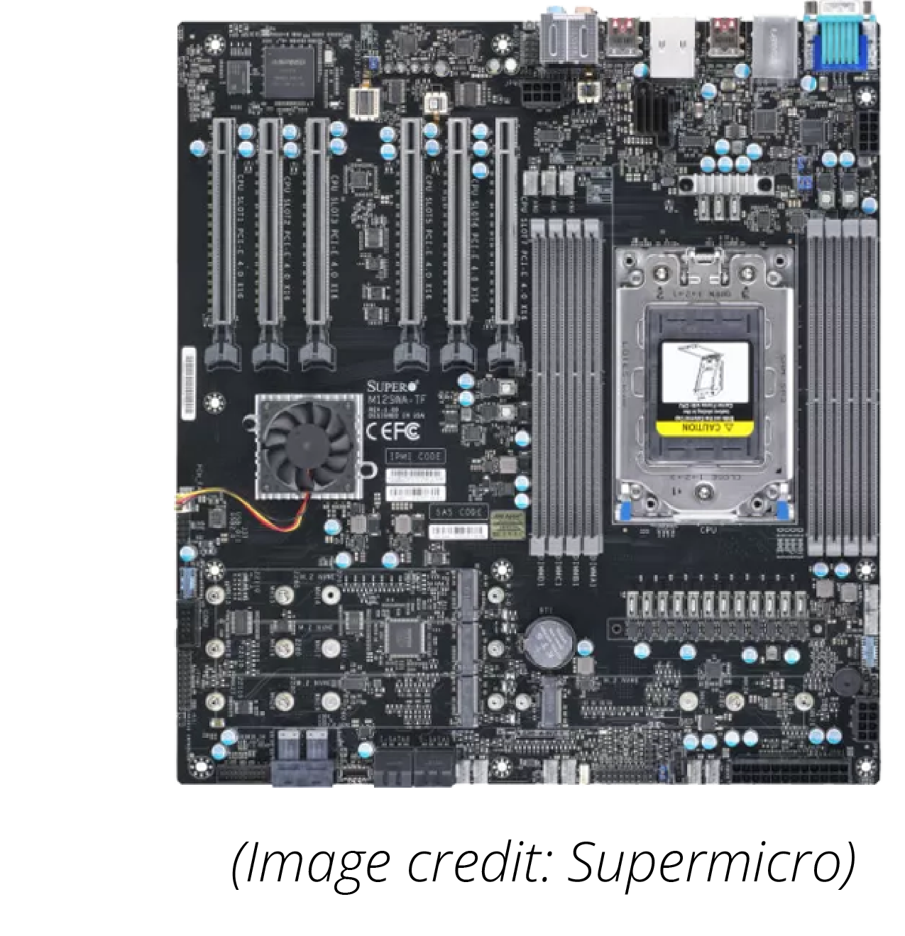 The Supermicro Super M12SWA-TF E-ATX motherboard has some great features, like more USB 3.2 Gen2 ports than we’ve ever seen before, and dual-LAN with 10GbE on one port and BMC/IPMI for remote monitoring and management.