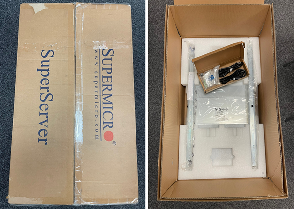 The server was shipped in a typical Supermicro double-layered cardboard packaging. As with all Supermicro rack-mount servers, it arrived with a tool-less rail kit and accessories, which included power cables and screws.