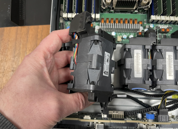 Supermicro has made their 1U cooling fans hot-swappable, by incorporating a built-in 6-pin connector in a solid plastic housing that plugs directly into the motherboard. This eliminates the concern of excess fan cables getting caught by the fan blades or having to locate a dedicated 4-pin fan connector on the motherboard.