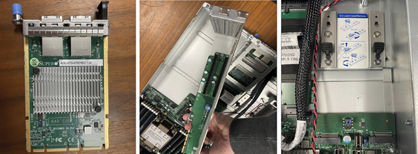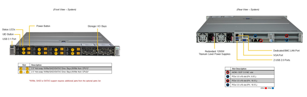 The back of the chassis supports 3 standard PCIe 5.0 x16 full-height expansion cards and one Supermicro AIOM (Advanced I/O Module), which is compatible with OCP 3.0 standard. The AIOM offers flexible networking options without utilising standard PCIe card expansion slots, with choices ranging from 1GbE to 100GbE.