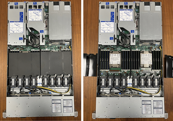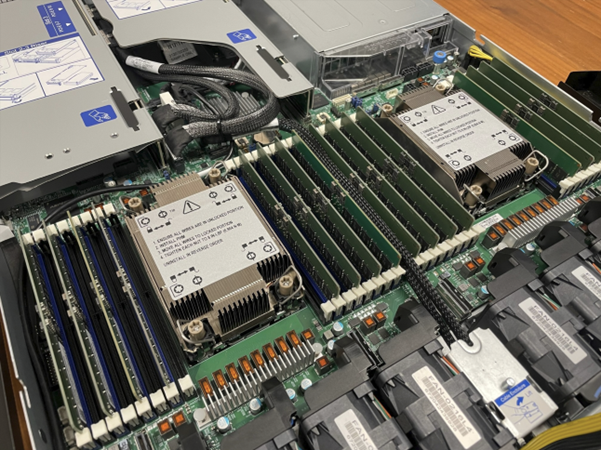 After opening the lid, we have access to the motherboard and all other internal server components.