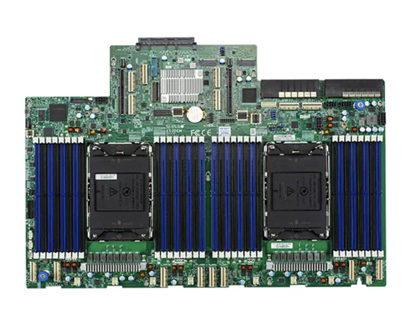 The SYS-121H-TNR is powered by a Supermicro X13DEM motherboard, which uses a proprietary to a Supermicro form factor. It features two CPU sockets (Socket E / LGA-4677) that support 4th Gen Intel Xeon Scalable processors with up to 60 cores and 350W TDP, and 32 memory slots that support DDR5-4800MHz with up to 8TB of capacity. Since the board is designed to be installed in 1U and 2U servers, it does not have traditional PCIe expansion slots. Instead, it has multiple proprietary PCIe slots that are designed to be paired with 1U or 2U risers, as well as multiple MCIO ports (PCIe 5.0 x8) that are used to connect additional card expansion slots and the disk backplane.