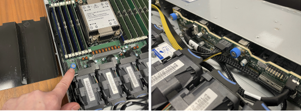 The server features a lid-release button with a locking mechanism on top, which makes opening and closing the lid easier. This is an improvement over their previous chassis designs, which used a dual release catch mechanism that was not as reliable and often became stuck.