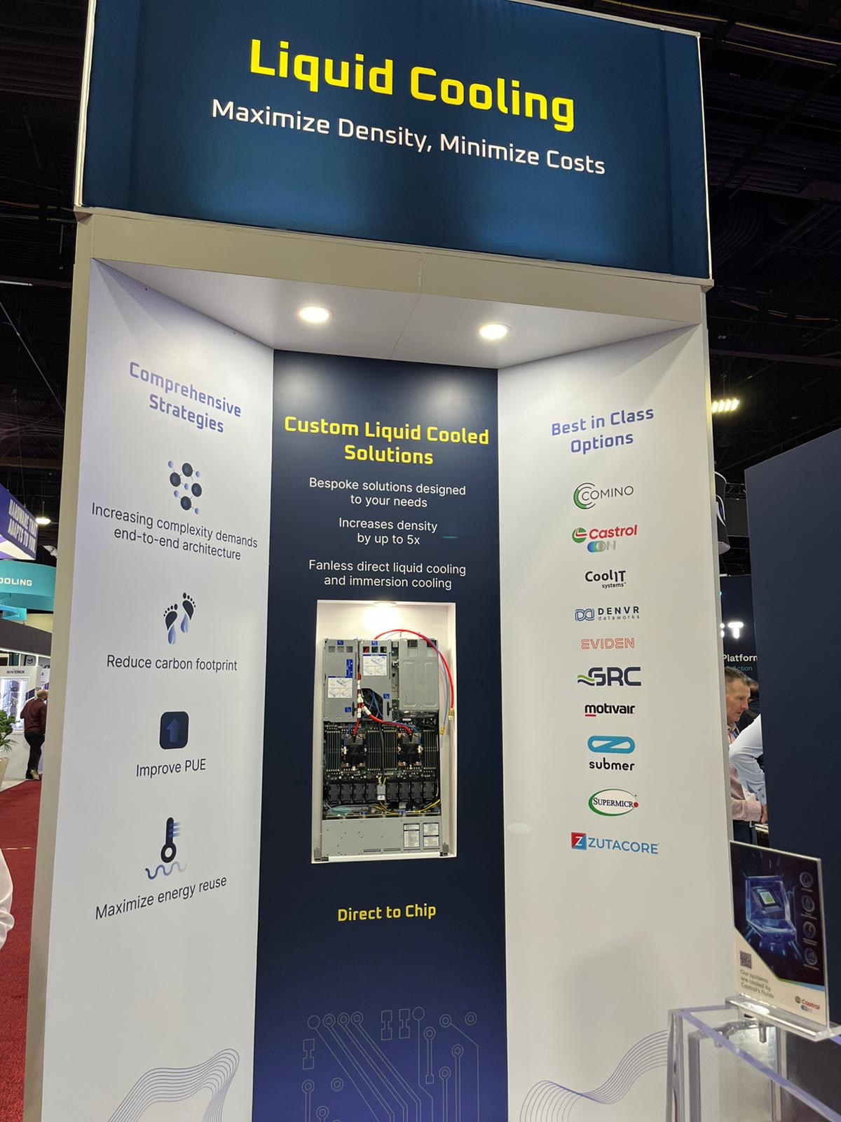 Boston also had Castrol’s innovative liquid cooling technology on the booth, demonstrating how its cutting-edge Castrol ON fluids deliver superior thermal management. These dielectric fluids are engineered to maximise heat transfer efficiency while being non-conductive, ensuring safe and reliable cooling for high-performance computing systems. By significantly reducing the energy required for active cooling, Castrol’s solution contributes to sustainability goals, aligning with the industry’s shift toward greener, more efficient technologies.