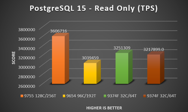 In the PostgreSQL 15 Benchmark test, the results highlight a significant performance improvement in Database Read-Only (TPS) performance.