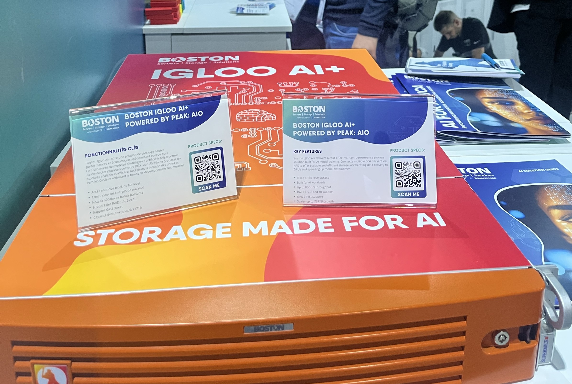 Also on display was the Boston Igloo AI+, powered by PEAK:AIO, a high-performance storage solution tailored for AI workloads. It’s designed to maximise throughput and latency without requiring heavy investment in GPU accelerators — meaning it is particularly valuable for organisations building out early-stage AI infrastructure or working with limited power and cooling options.