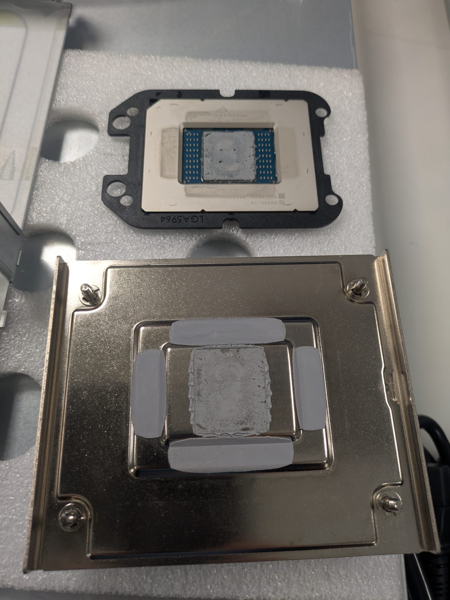 The heatsink itself has three different physical levels that fit the unique Ampere CPU design. The highest point connects to the compute die and the second level cools the memory and PCIe dies.