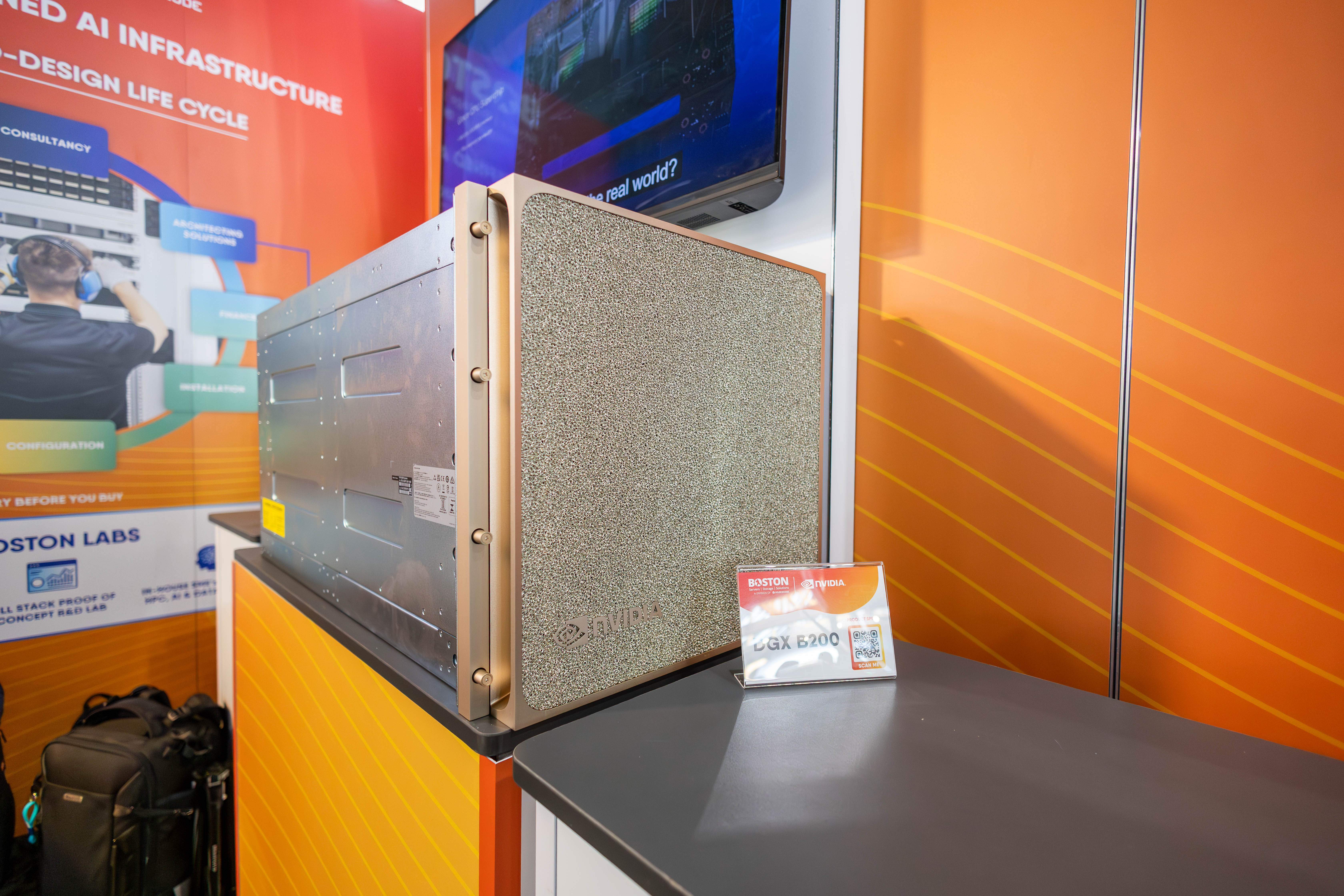 A highlight of the booth was NVIDIA’s DGX B200. Engineered for enterprise, this system delivers massive scalability and AI performance directly for businesses ready to deploy production-grade ML/AI workloads with mission-critical SLAs.