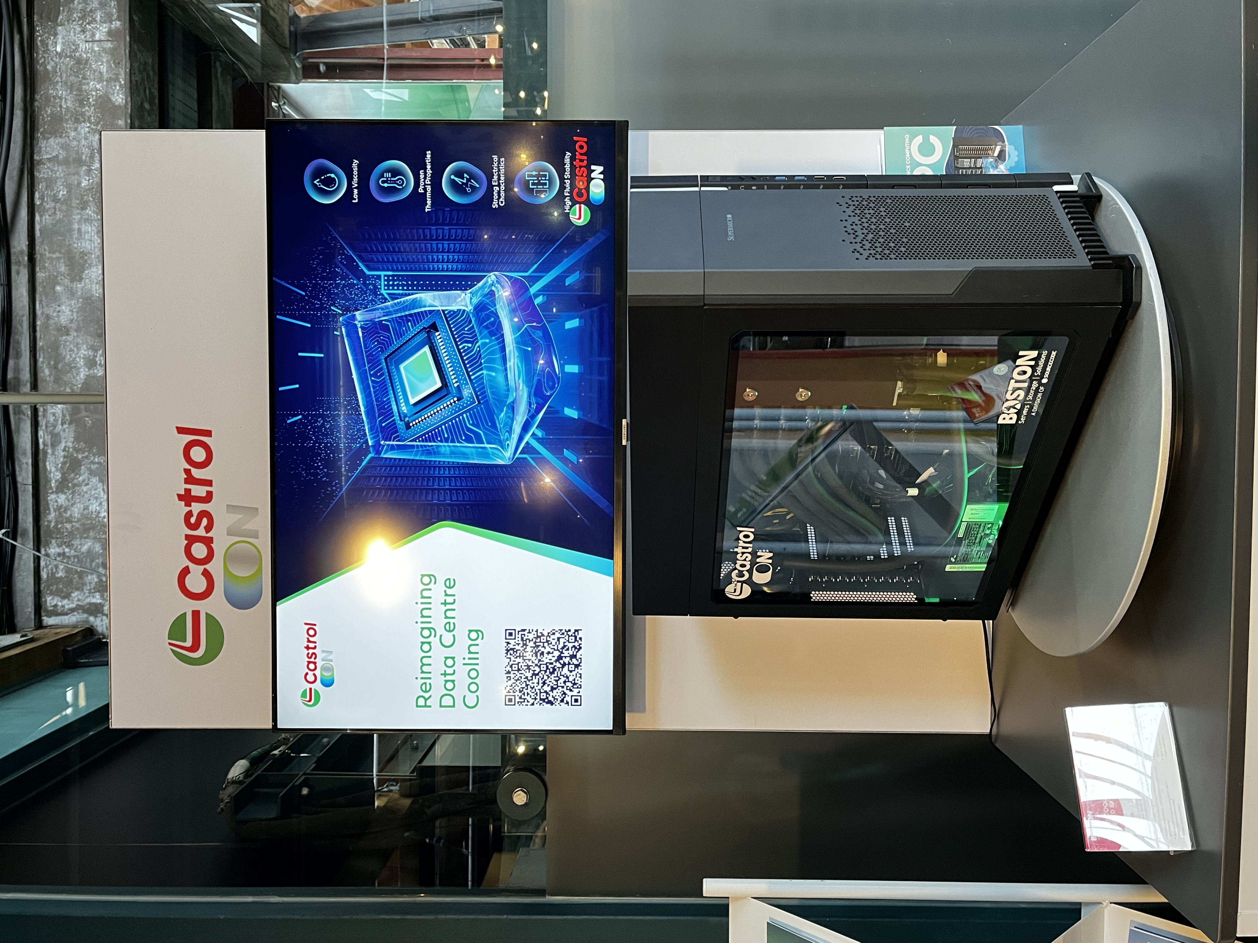 On display was the liquid-cooled workstation previously seen at GITEX Berlin, re-engineered with Castrol immersion cooling. A true testament to cooling innovation and quiet operation under heavy compute loads.