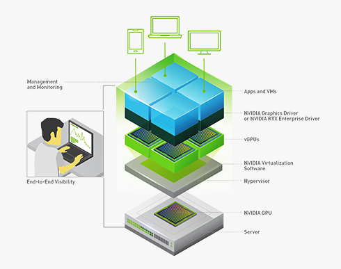 This can be particularly advantageous with virtual workstations. Standard virtual machines have very limited graphics capability and can feel sluggish to use, and struggle to play video. Adding a vGPU profile to a VM adds can add graphical acceleration to a system. For knowledge workers this could mean you only need 1 or 2GB per profile, allowing dozens of people to share a single GPU and other server resources.