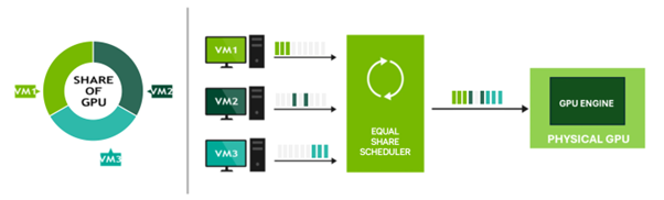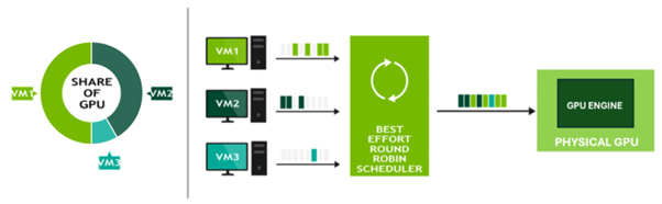 You may need to guarantee the performance of your VMs. The default job scheduler is best-effort/round-robin and gives each vGPU access to the maximum amount of compute resources. While this can provide the greatest GPU utilisation, it can suffer from “noisy neighbour syndrome”, where one VM is especially demanding and impacts the performance of the other VMs sharing that hardware.