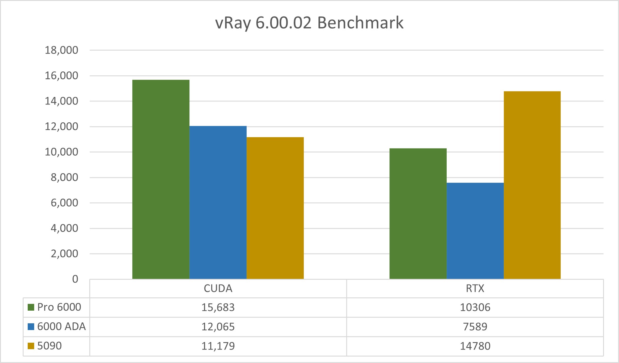 The vRay benchmark uses a pre-determined scene and then either uses the CPU or GPU to render. This is done by samples per minute; the higher the score, the better the performance. GPU has the options to run either CUDA or RTX; CUDA uses parallel compute whereas RTX uses real time rendering.