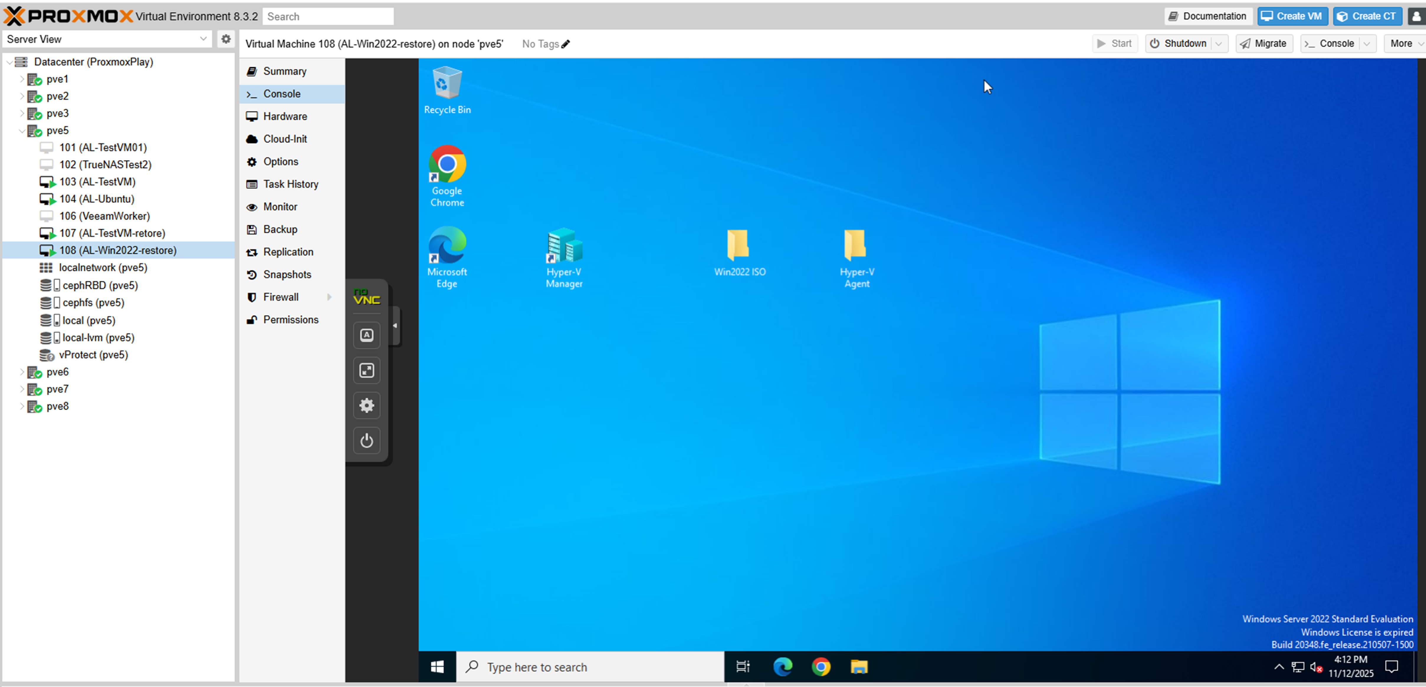 The VM can be restored on Proxmox VE platform and the VM up and running:
